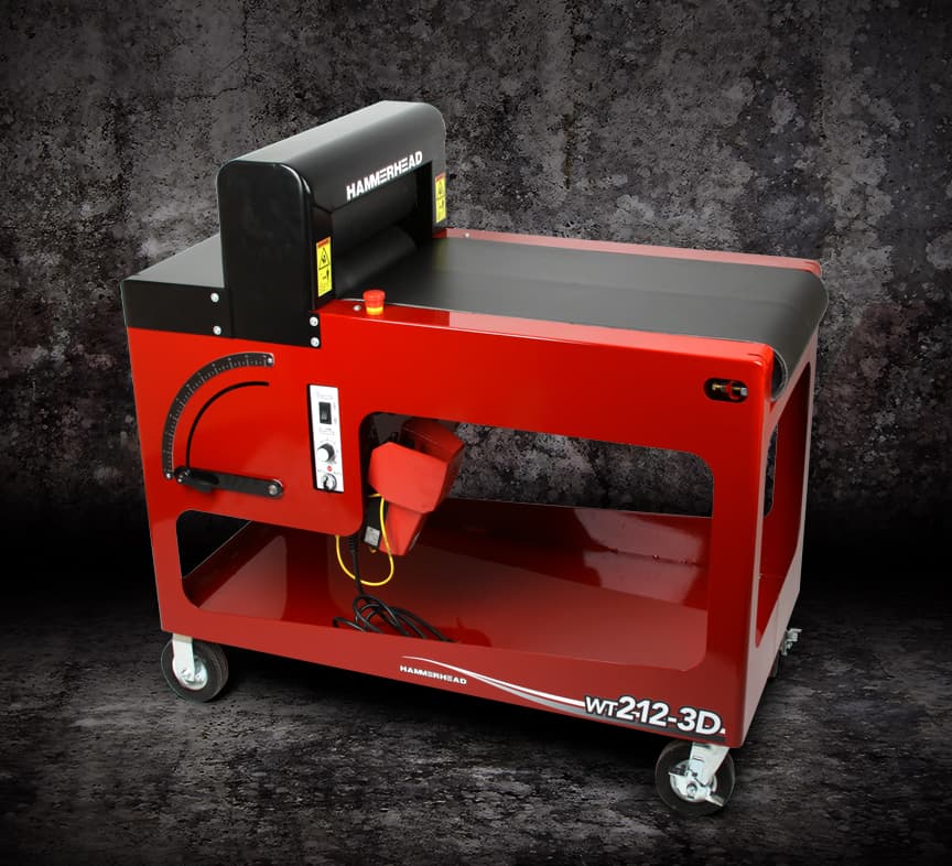 Other notable features of the new WT212-3D include a safety e-stop that not only halts movement but also releases roller pressure for easier removal of anything between the rollers. A self-centering belt eliminates the hassle of in-field adjustment and reduces wear and tear. In addition, the durable, wheeled table frame includes storage space for more value, utility and convenience on the jobsite.