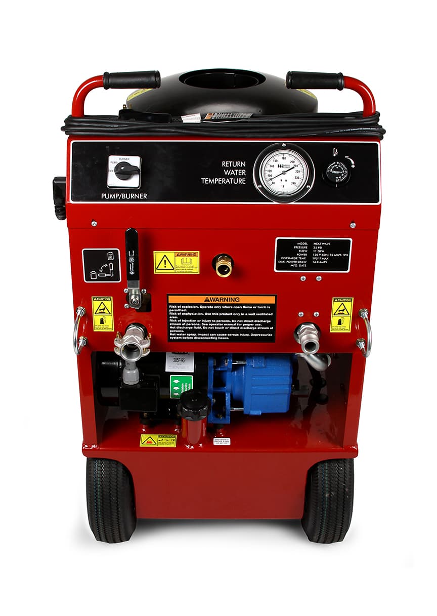 The HeatWave incorporates the boiler and the pump in a single unit, simplifying setup, reducing the number of hoses to connect and maintaining a tidy footprint. Controls are centrally located for greater ease-of-use, and an onboard return temperature sensor makes monitoring effortless, so you can simply and precisely match the curing schedule. The boiler runs on diesel fuel and its pump runs on conventional 120 V power sources.