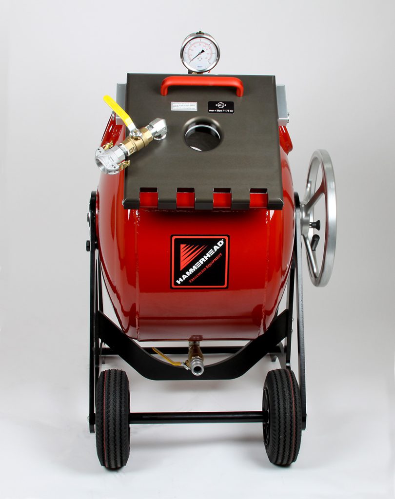 Once the liner is wet-out, time is limited to get it installed before it cures, so having efficient installation equipment is crucial. HammerHead® QuickLok inversion drums were created to improve upon the inversion drum design by adding time-saving features including the patent pending QuickLok door system. The door is locked down in seconds using a single lever instead of using valuable time to tighten multiple bolt-downs. The QuickLok door reliably seals the drum and provides visual confirmation that the door is secure. QuickLok inversion drums also feature other time-savers like improved maneuverability, and an economical drum nozzle system that uses fewer nozzles to cover the entire 2 – 8″ installation range. HammerHead QuickLok inversion drums will allow you to maximize the working time on any lining job.