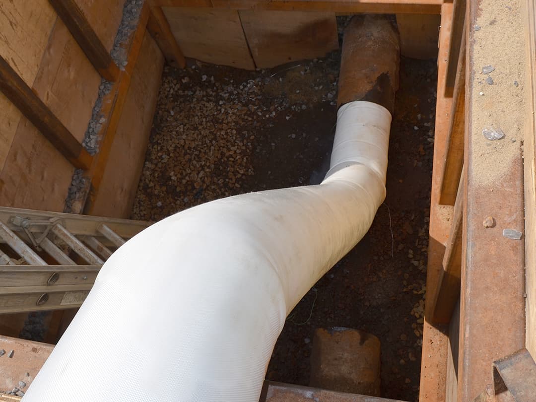 RS BlueLine can be installed in any host pipe material. It seals the internal surfaces of the host pipe, preventing leaks, encrustation, and corrosion. It is typically installed in lengths ranging from 300-500 feet, and easily navigates bends up to 45° and joint deflections up to 10%.